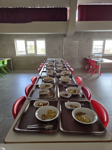 Hijyen koşullarının en üst düzeyde sağlandığı yemekhanemizde; sabah, öğle ve ikindi kahvaltısı olmak üzere, üç öğünden oluşan beslenme programımız, çocukların yaş ve gelişim düzeyleri göz önünde bulundurularak, gıda rasyonuna uygun, tecrübeli aşçılarımız tarafından hazırlanmaktadır.